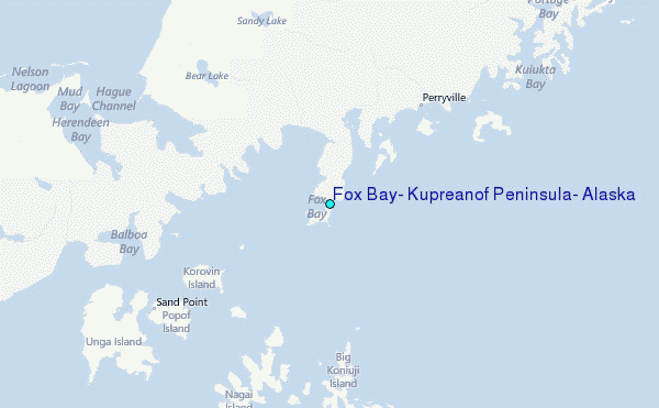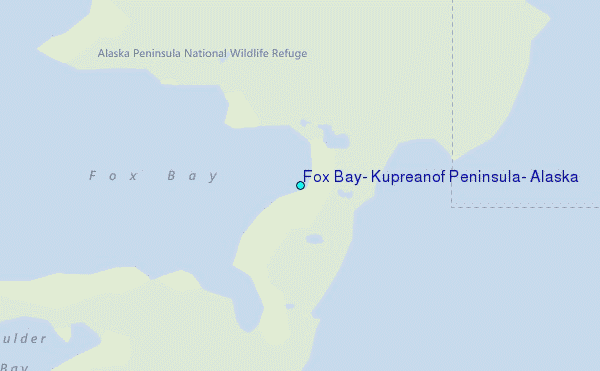 Use this relief map to navigate to tide stations, surf breaks and cities that are in the area of Fox Bay, Kupreanof Peninsula, Alaska.