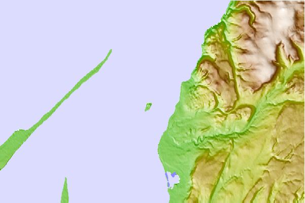 Use this relief map to navigate to tide stations, surf breaks and cities that are in the area of Fox Island, Newfoundland.
