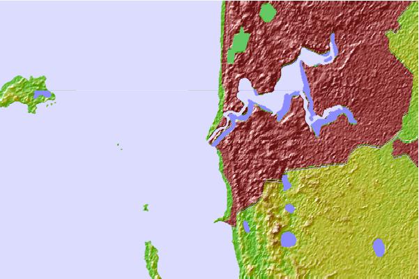 Use this relief map to navigate to tide stations, surf breaks and cities that are in the area of Fremantle, Australia.