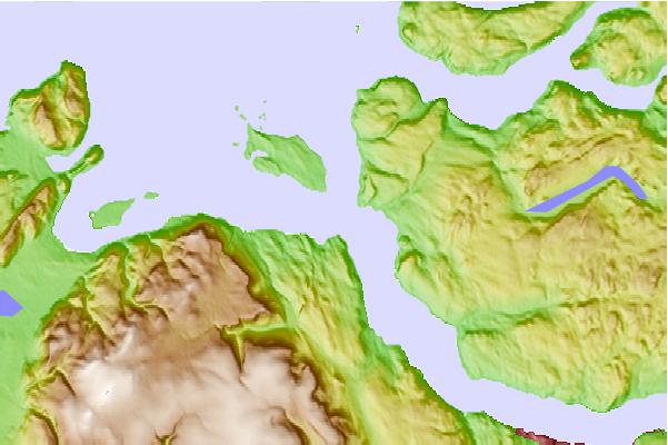 Use this relief map to navigate to tide stations, surf breaks and cities that are in the area of Frenchman's Cove, Bay of Islands, Newfoundland.