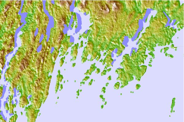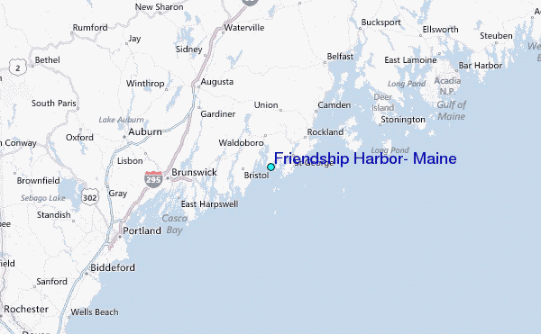 Use this relief map to navigate to tide stations, surf breaks and cities that are in the area of Friendship Harbor, Maine.