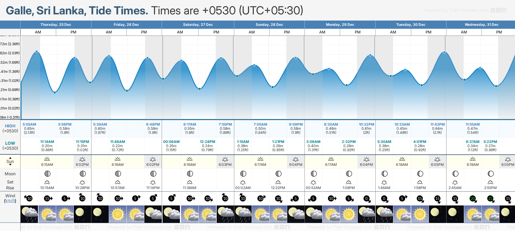 Tide Times for Galle: Wednesday 31 December 2025