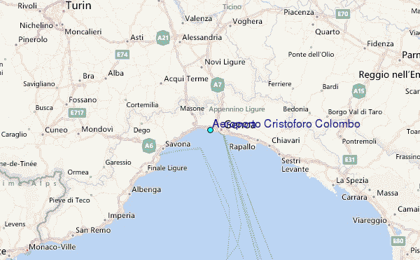 Use this relief map to navigate to tide stations, surf breaks and cities that are in the area of Aeroporto Cristoforo Colombo.