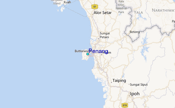 Use this relief map to navigate to tide stations, surf breaks and cities that are in the area of Penang.