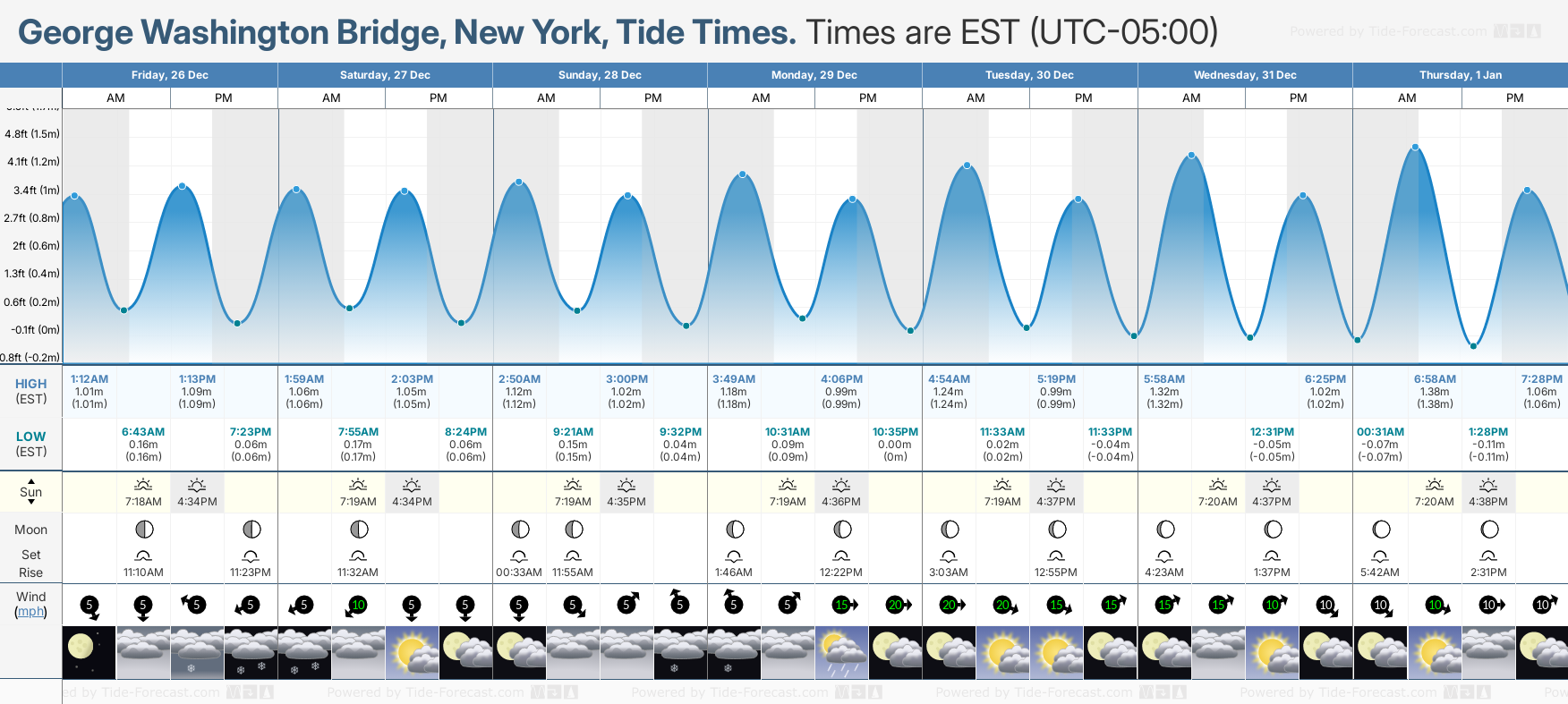 Tide Times for George Washington Bridge (tomorrow): Friday 26 December 2025