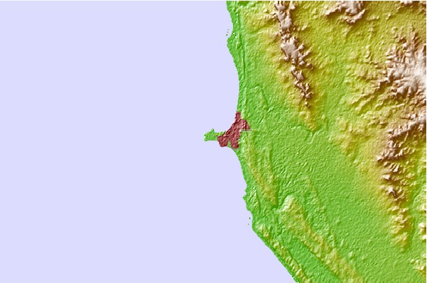 Use this relief map to navigate to tide stations, surf breaks and cities that are in the area of Geraldton, Australia.