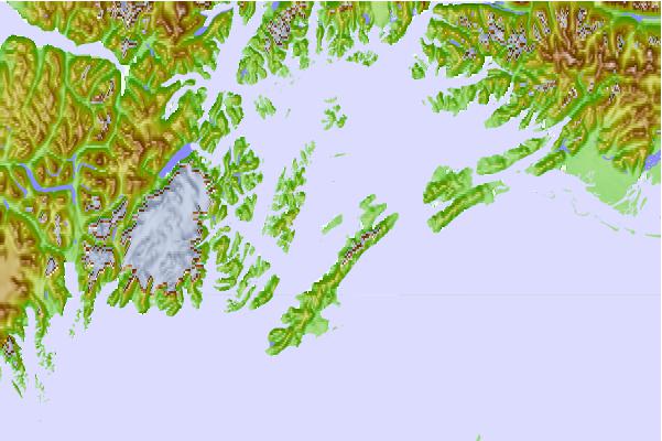 Use this relief map to navigate to tide stations, surf breaks and cities that are in the area of Gibbon Anchorage, Green Island, Alaska.