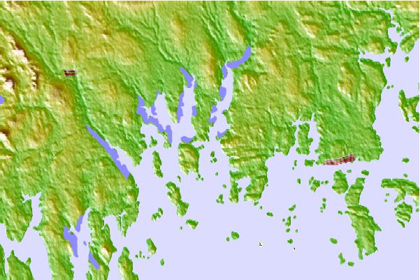 Use this relief map to navigate to tide stations, surf breaks and cities that are in the area of Gibbs Island, Maine.