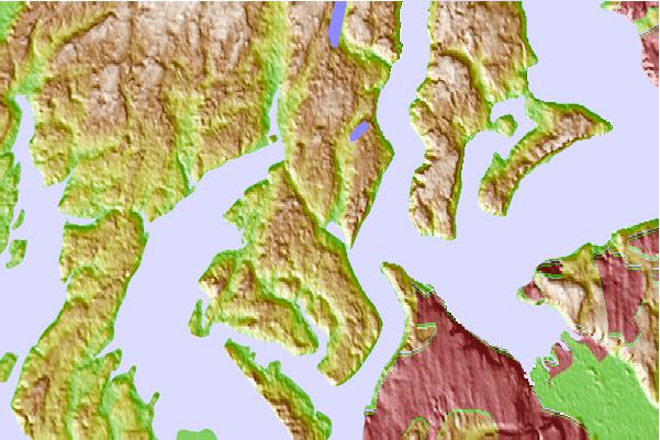 Use this relief map to navigate to tide stations, surf breaks and cities that are in the area of Gig Harbor, Washington.