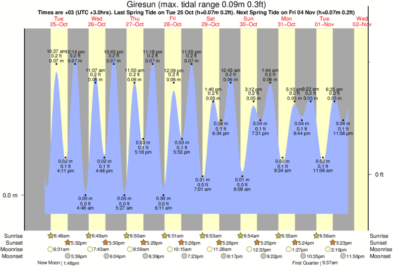 Tide chart for GiresunShowing low and high tide times for the next 30 days at Giresun. Tide Times are +03 (UTC +3.0hrs).