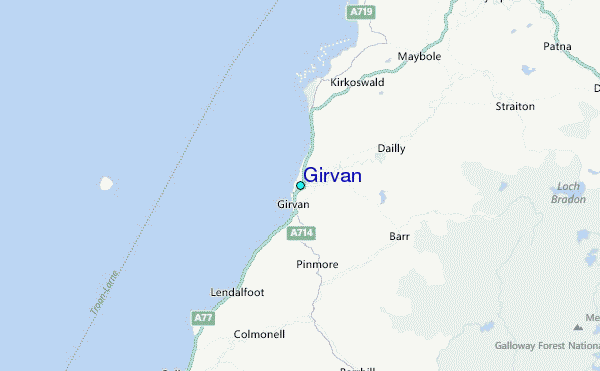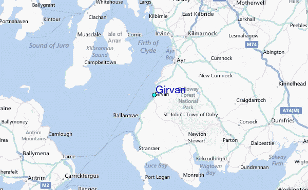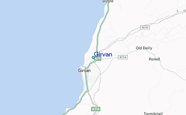 Use this relief map to navigate to tide stations, surf breaks and cities that are in the area of Girvan.