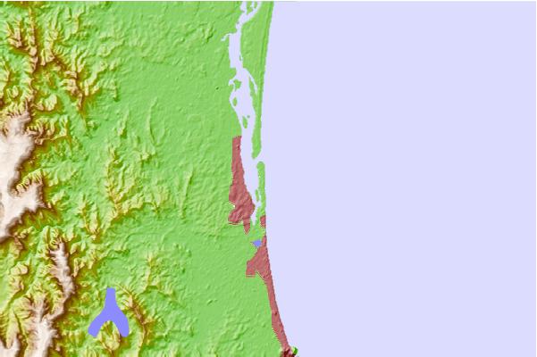 Use this relief map to navigate to tide stations, surf breaks and cities that are in the area of Gold Coast Seaway, Australia.