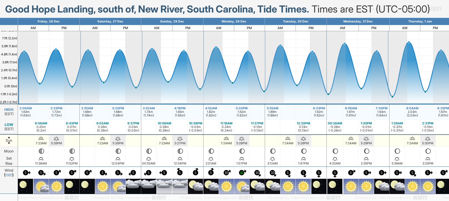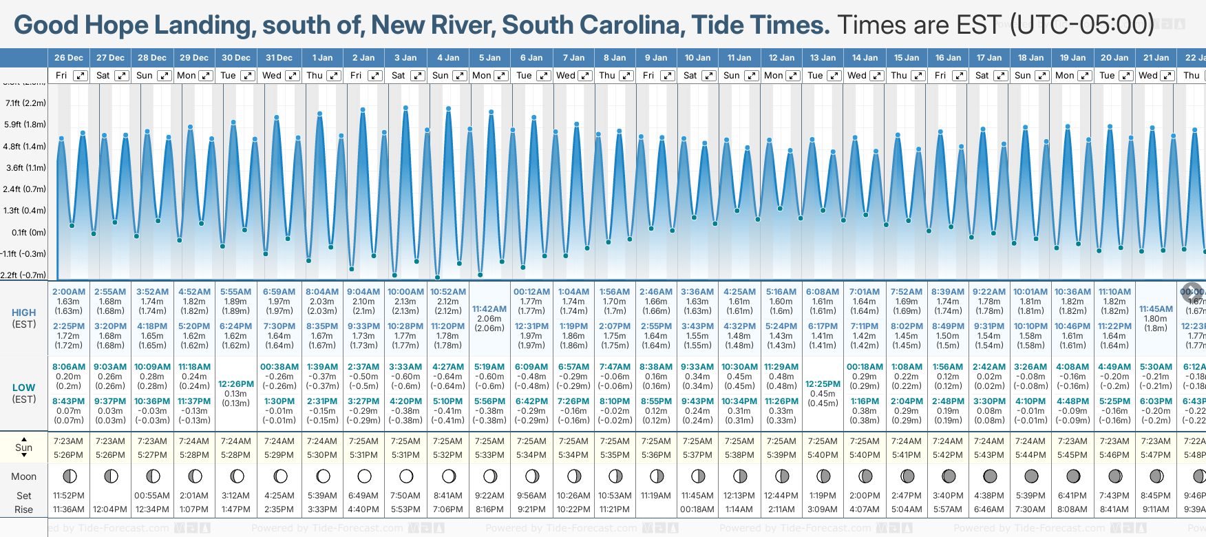 NOTE: Use of this site for Good Hope Landing, south of, New River, South Carolina tide times is subject to our terms.