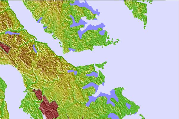 Use this relief map to navigate to tide stations, surf breaks and cities that are in the area of Goodwin Neck, York River, Virginia.