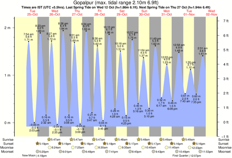 December and January Tide charts for Gopalpur: The tide charts below show the height, time and date of high and low tides for the next 30 days.