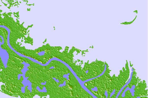 Use this relief map to navigate to tide stations, surf breaks and cities that are in the area of Grand Bay, Louisiana.