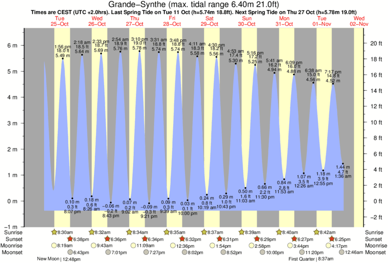 December and January Tide charts for Grande-Synthe: The tide charts below show the height, time and date of high and low tides for the next 30 days.