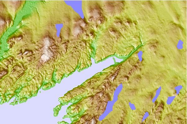 Use this relief map to navigate to tide stations, surf breaks and cities that are in the area of Grande le Pierre Harbour, Newfoundland.