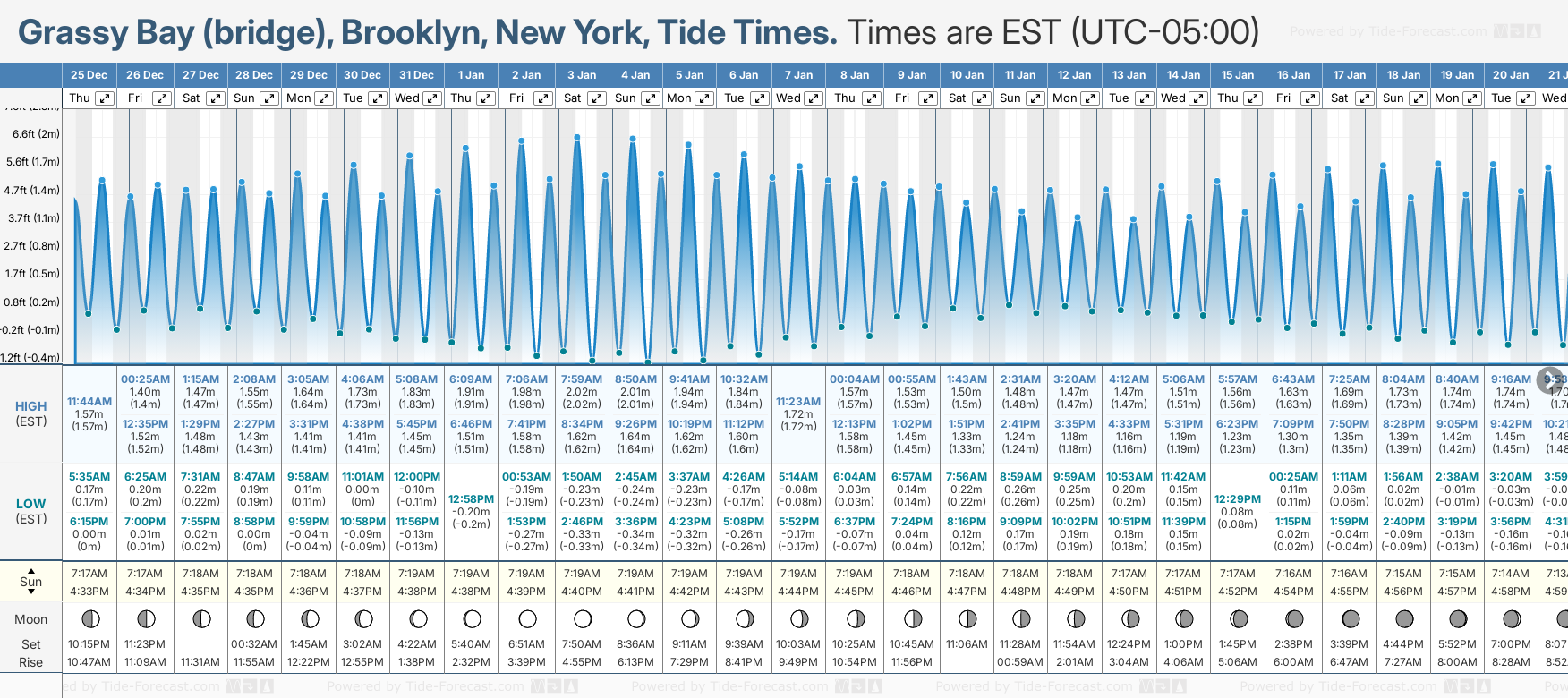 Grassy Bay (bridge), Brooklyn tide times for December and January