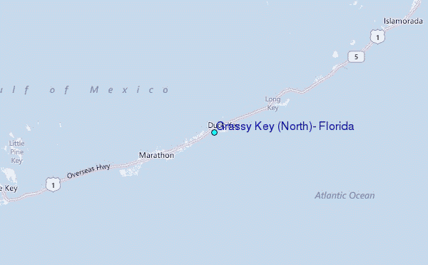 Use this relief map to navigate to tide stations, surf breaks and cities that are in the area of Grassy Key (North), Florida.