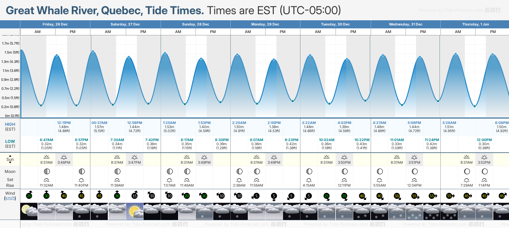 NOTE: Use of this site for Great Whale River, Quebec tide times is subject to our terms.