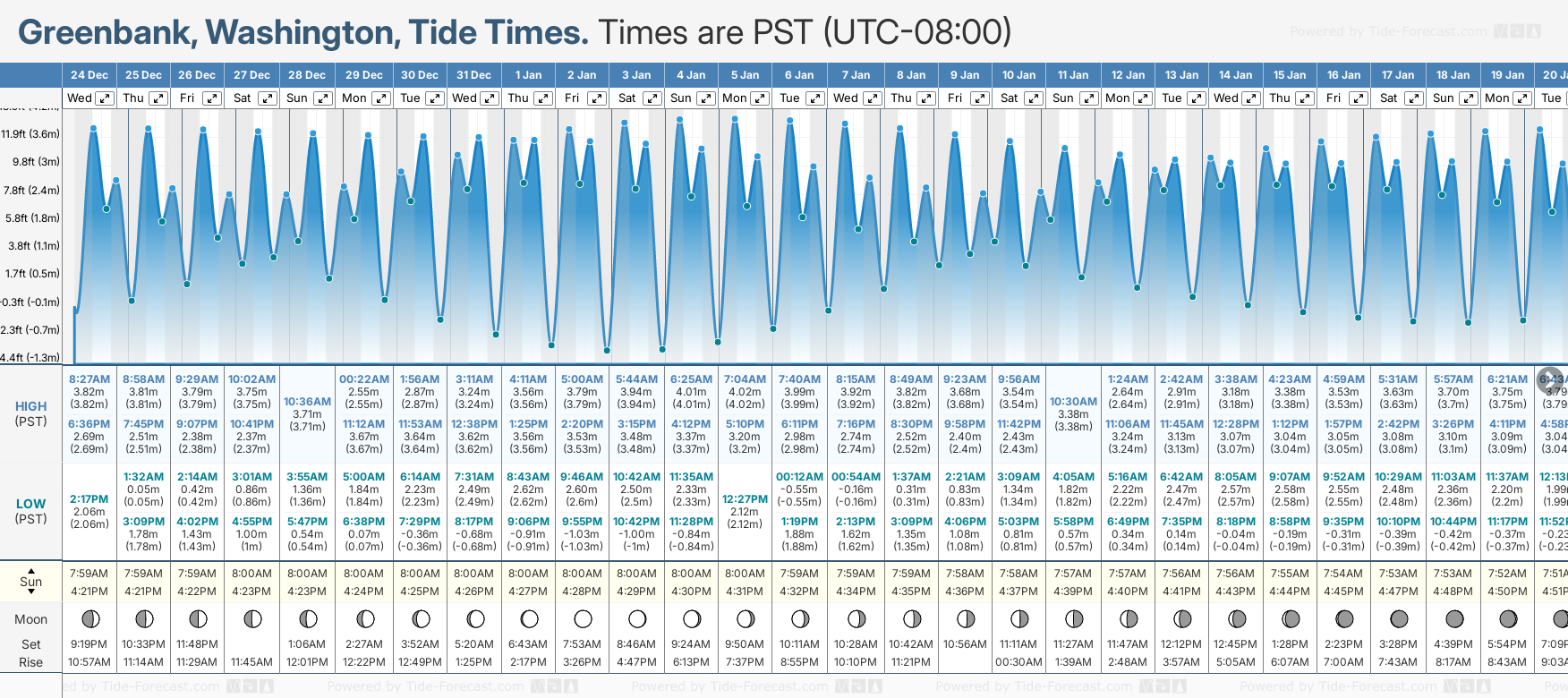 NOTE: Use of this site for Greenbank, Washington tide times is subject to our terms.