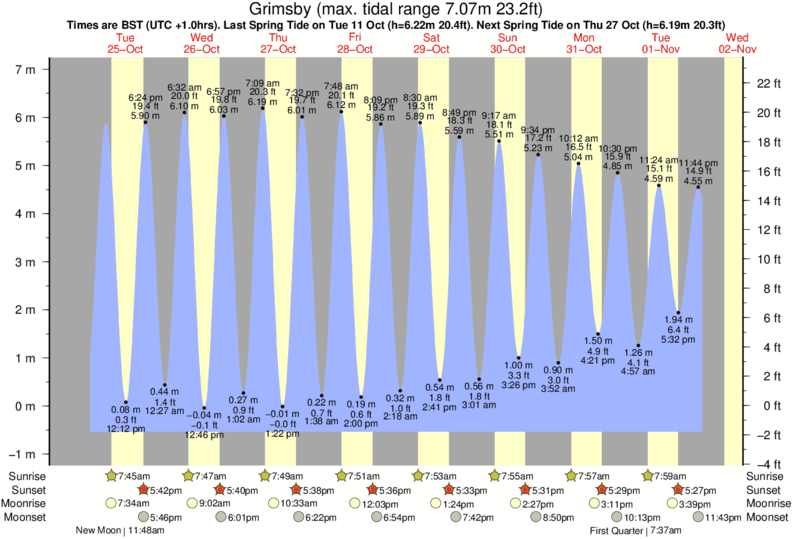 Tide chart for GrimsbyShowing low and high tide times for the next 30 days at Grimsby. Tide Times are GMT (UTC +0hrs).