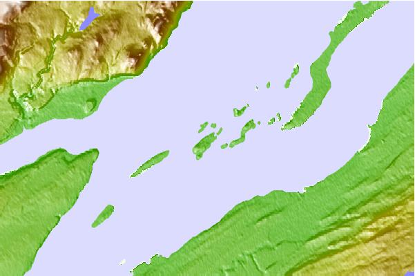 Use this relief map to navigate to tide stations, surf breaks and cities that are in the area of Grosse Ile, Quebec.