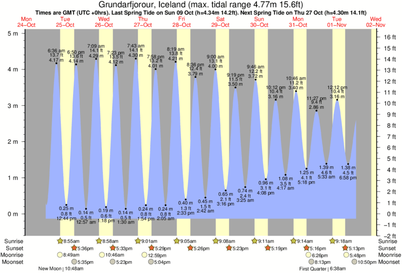 Tide Times are GMT (UTC +0hrs). Last Spring High Tide at Grundarfjorour was on Sat 06 Dec (height: 4.40m 14.4ft). Next high Spring Tide at Grundarfjorour will be on Mon 05 Jan (height: 4.40m 14.4ft).