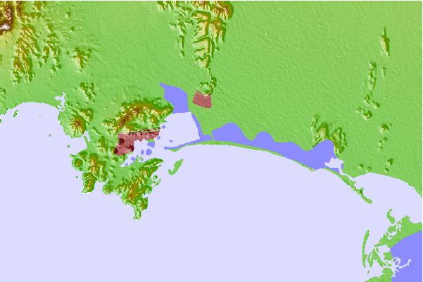 Use this relief map to navigate to tide stations, surf breaks and cities that are in the area of Guaymas.