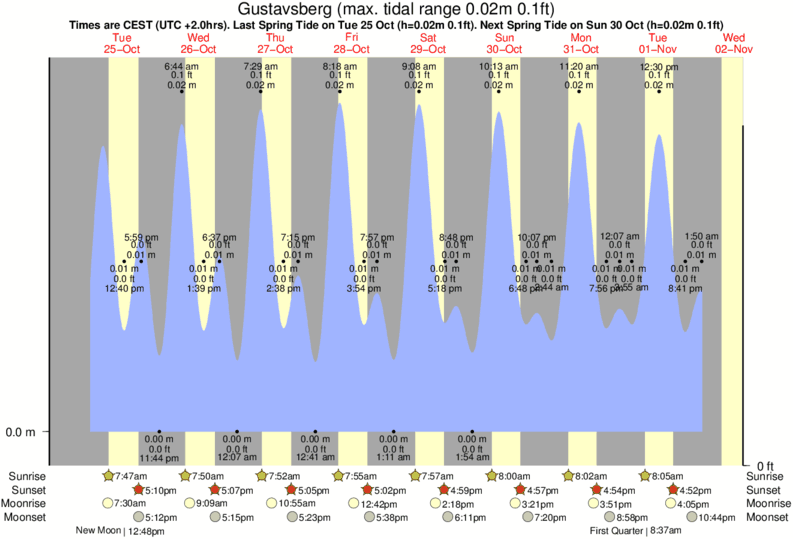 Tide Times are CET (UTC +1.0hrs). Last Spring High Tide at Gustavsberg was on Sat 20 Dec (height: 0.02m 0.1ft). Next high Spring Tide at Gustavsberg will be on Thu 25 Dec (height: 0.02m 0.1ft).