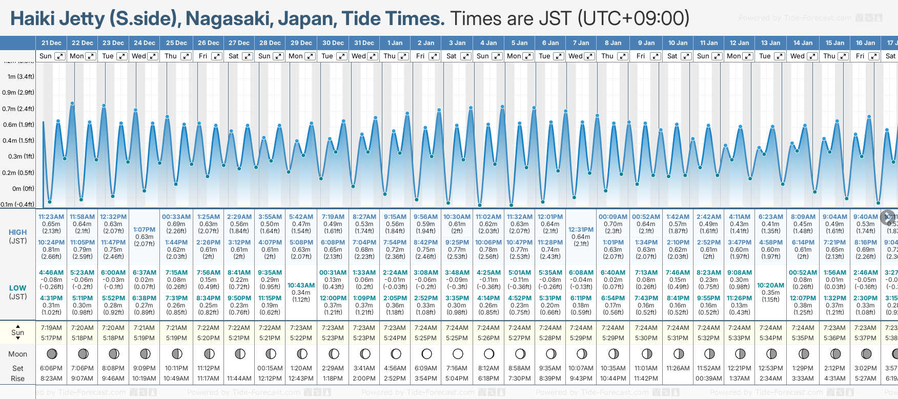 Today's tide times for Haiki Jetty (S.side), Nagasaki, Japan