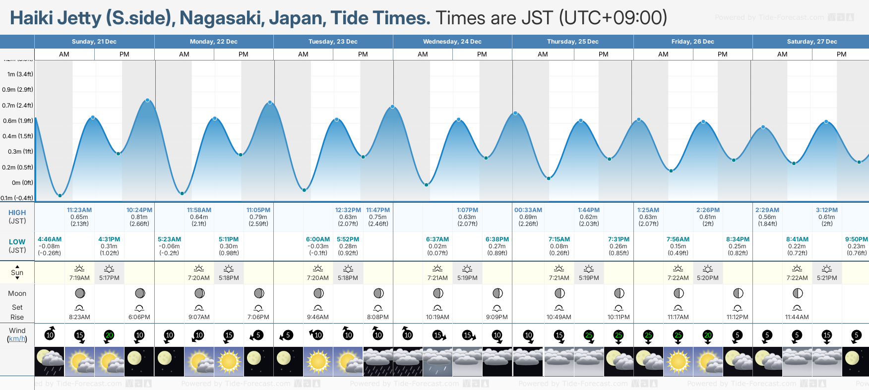 NOTE: Use of this site for Haiki Jetty (S.side), Nagasaki, Japan tide times is subject to our terms.
