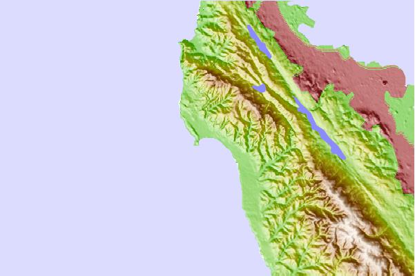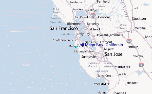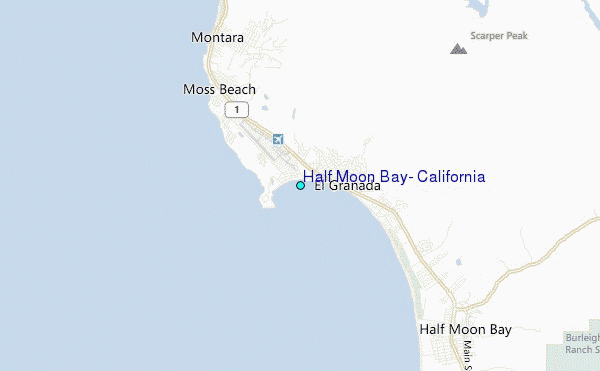 Use this relief map to navigate to tide stations, surf breaks and cities that are in the area of Half Moon Bay, California.