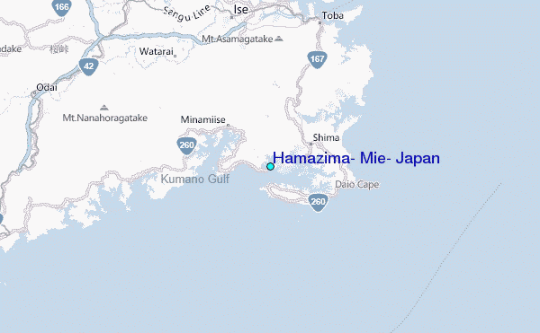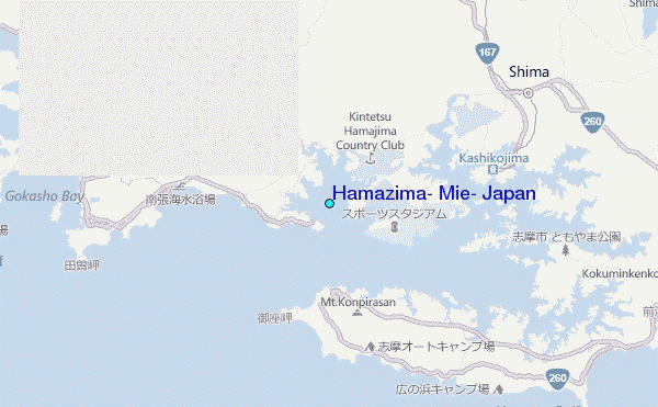 Use this relief map to navigate to tide stations, surf breaks and cities that are in the area of Hamazima, Mie, Japan.
