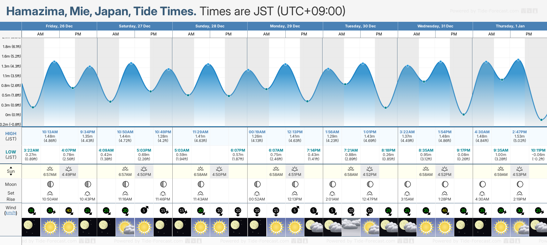 December and January Tide charts for Hamazima: The tide charts below show the height, time and date of high and low tides for the next 30 days.
