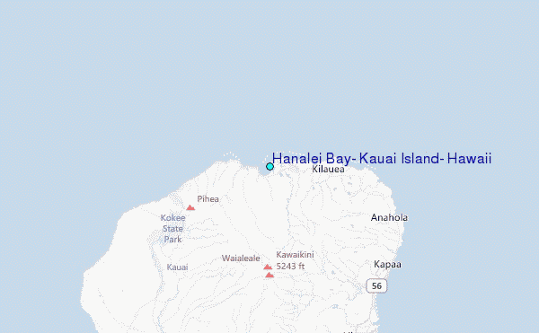 Use this relief map to navigate to tide stations, surf breaks and cities that are in the area of Hanalei Bay, Kauai Island, Hawaii.