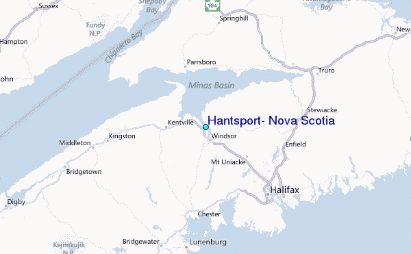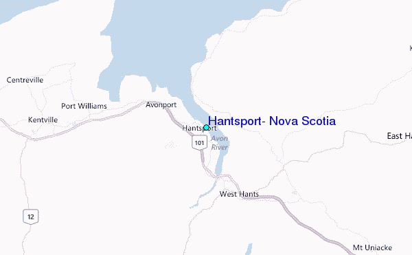 Use this relief map to navigate to tide stations, surf breaks and cities that are in the area of Hantsport, Nova Scotia.