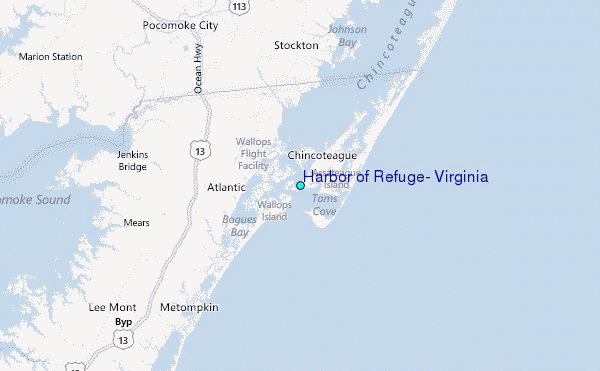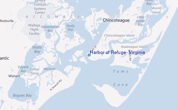 Use this relief map to navigate to tide stations, surf breaks and cities that are in the area of Harbor of Refuge, Virginia.