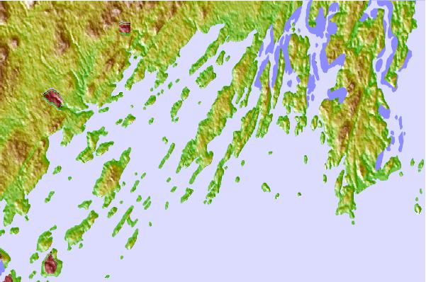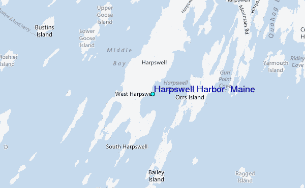 Use this relief map to navigate to tide stations, surf breaks and cities that are in the area of Harpswell Harbor, Maine.