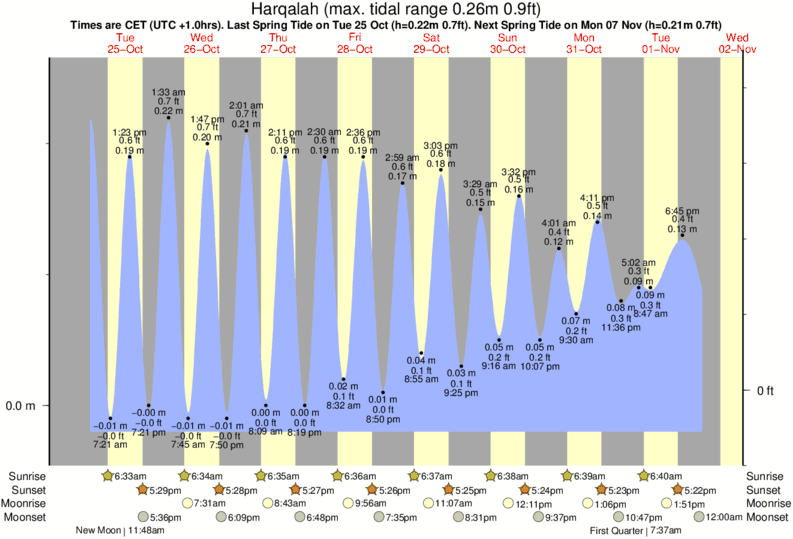 Tide Times are CET (UTC +1.0hrs). Last Spring High Tide at Harqalah was on Sun 07 Dec (height: 0.20m 0.7ft). Next high Spring Tide at Harqalah will be on Mon 22 Dec (height: 0.20m 0.7ft).