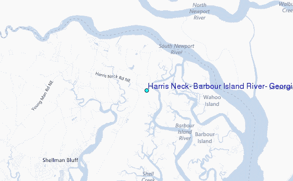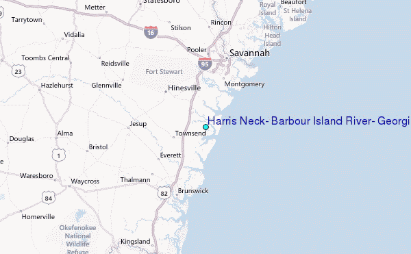Use this relief map to navigate to tide stations, surf breaks and cities that are in the area of Harris Neck, Barbour Island River, Georgia.