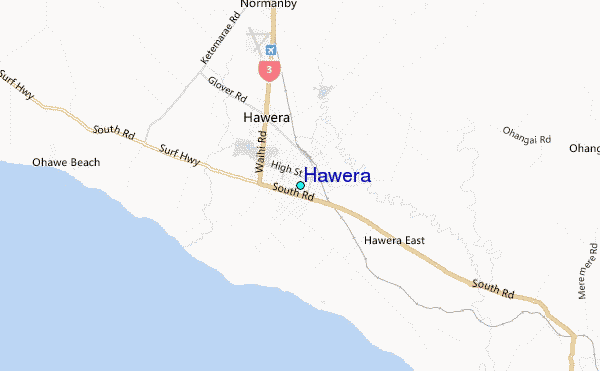 Use this relief map to navigate to tide stations, surf breaks and cities that are in the area of Hawera.