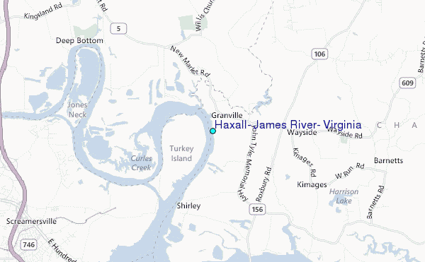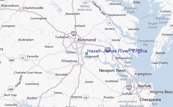 Use this relief map to navigate to tide stations, surf breaks and cities that are in the area of Haxall, James River, Virginia.