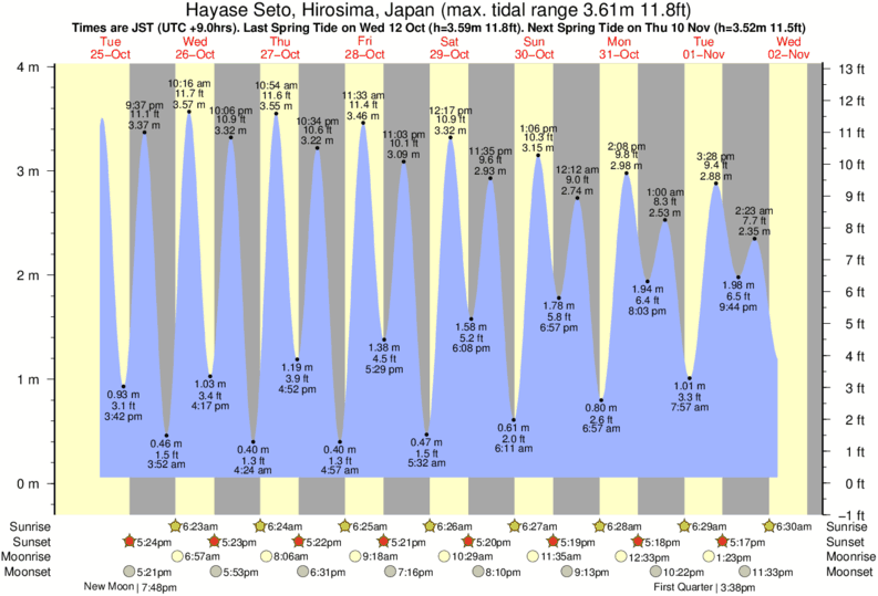 Today's tide times for Hayase Seto, Hirosima, Japan