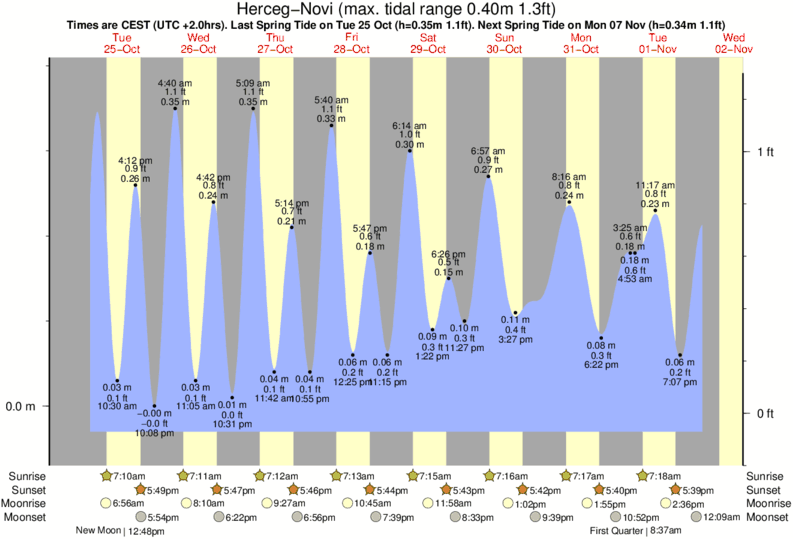 Tide chart for Herceg-NoviShowing low and high tide times for the next 30 days at Herceg-Novi. Tide Times are CET (UTC +1.0hrs).