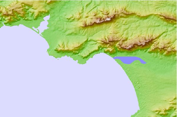 Use this relief map to navigate to tide stations, surf breaks and cities that are in the area of Hermanus.