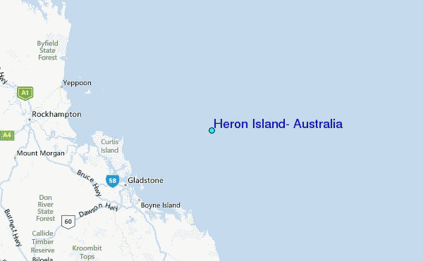 Use this relief map to navigate to tide stations, surf breaks and cities that are in the area of Heron Island, Australia.