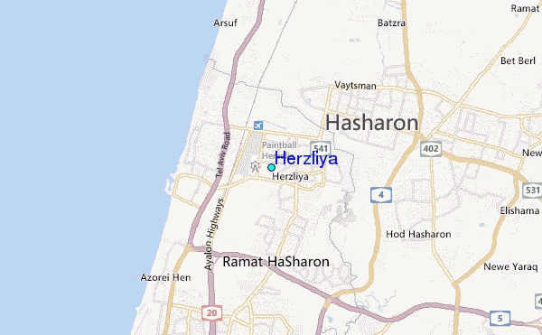 Use this relief map to navigate to tide stations, surf breaks and cities that are in the area of Herzliya.