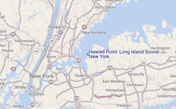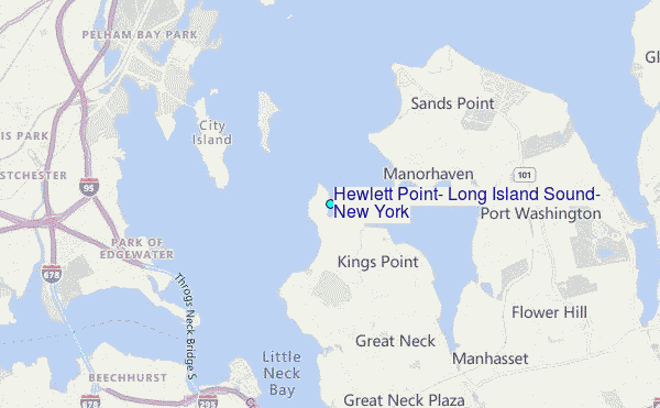Use this relief map to navigate to tide stations, surf breaks and cities that are in the area of Hewlett Point, Long Island Sound, New York.